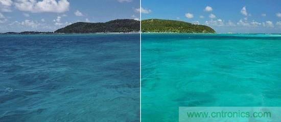 普通顯示器(左)和量子點(diǎn)顯示器(右)對比