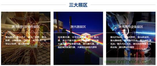 本次展會分為三大展區:激光材料及組件展區、激光器展區、激光系統設備展區,全面展示激光產業優秀的領軍企業。