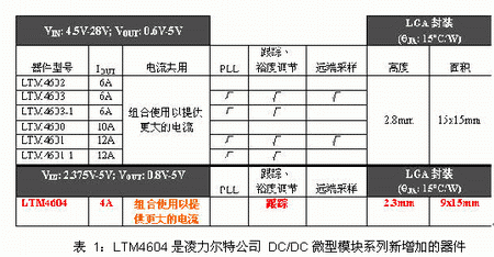 • 新推出的LTM4604滿足超薄、緊湊的要求
