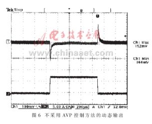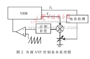 隨著VRM的深入發(fā)展,為滿足低電壓、大電流的需要,相繼提出了各種電路拓?fù)洌鐜С轭^電感的BUCK電路、有源鉗位的BUCK電路、耦合繞組的BUCK電路、移相軟開關(guān)BUCK電路等;并有優(yōu)良的控制方法問世,如V2控制、滯回控制等。以上的這些方法都甚是難以滿足電源模塊的發(fā)展需要。AVP的控制方法在適當(dāng)降低負(fù)載調(diào)整率的情況下有效地改善了模塊的動態(tài)響應(yīng),在低電壓、大電流的應(yīng)用場合中被人們重新認(rèn)識。本文對其從理論方法進(jìn)行分析,并采用新的檢測方法通過實(shí)驗(yàn)證明了AVP良好的動態(tài)調(diào)節(jié)能力。