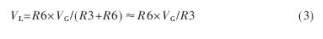 圖3中VF≈1V,施密特比較器的兩個比較點(diǎn)電壓分別為VH和VL,由式(2)和式(3)決定。