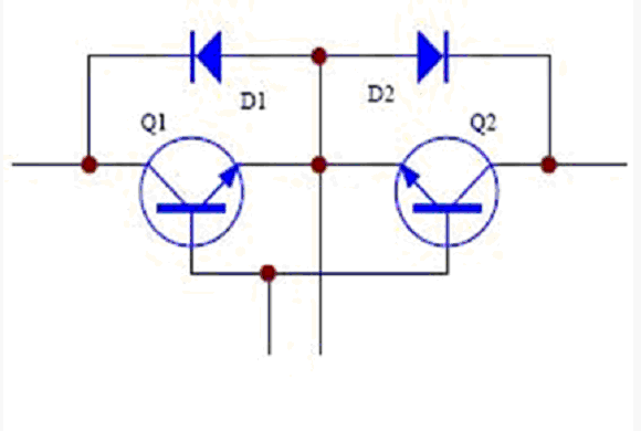 旁路開關(guān)常使用繼電器和可控硅。繼電器在中小功率的UPS 中廣泛應(yīng)用。優(yōu)點(diǎn)是控制簡單,成本低,缺點(diǎn)是繼電器有轉(zhuǎn)換時(shí)間,還有就是機(jī)電器件的壽命問題。可控硅常見于中大功率UPS 中。優(yōu)點(diǎn)是控制電流大,沒有切換時(shí)間。但缺點(diǎn)就是控制復(fù)雜,且由于可控硅的觸發(fā)工作特性,在觸發(fā)導(dǎo)通后要在反向偏置后才能關(guān)斷,這樣就會產(chǎn)生一個(gè)最大10ms的環(huán)流電流,如圖2。如果采用IGBT,如圖3,則可以避免這個(gè)問題,使用IGBT 有控制簡單的優(yōu)點(diǎn),但成本較高。其工作原理為:當(dāng)輸入為正半周時(shí),電流流經(jīng)Q1、D2,負(fù)半周時(shí)電流流經(jīng)D1、Q2。