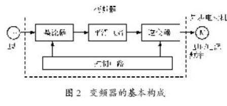 圖2所示為變頻器的基本構成。它的基本原理是用一種特定的方式對變頻器中的晶閘管開關進行導通和關斷,直接把輸入的電壓波形“大致”調(diào)制成所需頻率的交流波形。