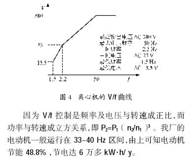 變頻器的控制方式大體有4 種:V/f控制,轉差頻率控制,矢量控制,直接轉矩控制。我廠選用的變頻器采用V/f 控制。