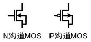 MOSFET管是FET的一種(另一種是JFET),可以被制造成增強型或耗盡型,P溝道或N溝道共4種類型,但實際應(yīng)用的只有增強型的N溝道MOS管和增強型的P溝道MOS管,所以通常提到NMOS,或者PMOS指的就是這兩種。右圖是這兩種MOS管的符號。