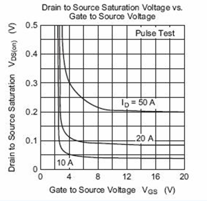 下圖是瑞薩2SK3418的Vgs電壓和Vds電壓的關(guān)系圖。可以看出小電流時,Vgs達到4V,DS間壓降已經(jīng)很小,可以認(rèn)為導(dǎo)通。