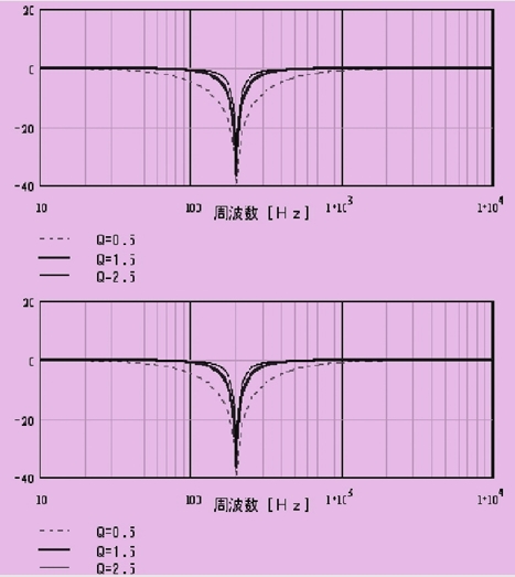 陷波濾波器又稱為帶阻濾波器,可對任意頻率信號有效地阻斷,甚至可使諧振點的增益降到零。當諧振峰值高而頻率帶寬窄時適用。通過改變品質因數(q值)使衰減特性變化急劇或平緩。頻率設置范圍從50~1500hz,q值設置范圍從0.5~2.5(默認值1.5)。圖2示出了陷波濾波器設置圖。
