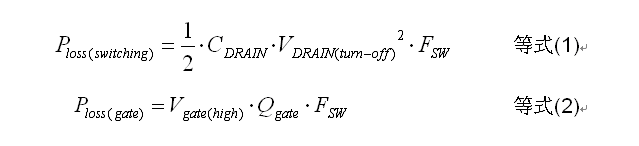 對于功率低于75 W的適配器而言,在工作能效提升方面,首先就需要考慮其損耗來源。事實上,其損耗主要包括兩個方面,分別是開關(guān)損耗和門電荷(Qgate)損耗,這兩類損耗分別可以用等式(1)和等式(2)來量化: