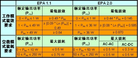 表1:美國環(huán)保署“能源之星”外部電源的1.1及2.0版規(guī)范。