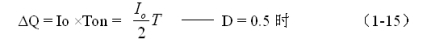 由圖1-6可以看出,在控制開關的占空比D等于0.5的情況下,電容器充、放電的電荷和充、放電的時間,以及正、負電壓紋波值均應該相等,并且電容器充電流的平均值也正好等于流過負載的電流。因此,電容器充時,電容器存儲的電荷ΔQ為: