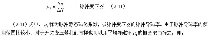 幾乎可以看成是一個(gè)常數(shù);而開關(guān)變壓器輸入脈沖電壓的幅度以及寬度都不是固定的,其磁滯回線的面積相對來說變化比較大,鐵芯導(dǎo)磁率的變化范圍也很大,特別是雙激式開關(guān)變壓器,因此,只能用平均導(dǎo)磁率