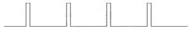 而當輸出電壓降至50V5A時,控制脈沖的寬度降到最寬脈沖的10%,形如:
