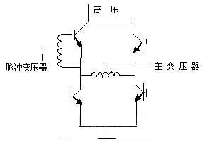 由電路可以看出,市電經(jīng)整流濾波后變?yōu)?11V高壓,經(jīng)K1~K4功率開關管有序工作后,變?yōu)槊}沖信號加至高頻變壓器的初級,脈沖的高度始終為311V。當K1,K4開通時,311V高壓電流經(jīng)K1正向流入主變壓器初級,經(jīng)K4流出,在變壓器初級形成一個正向脈沖。