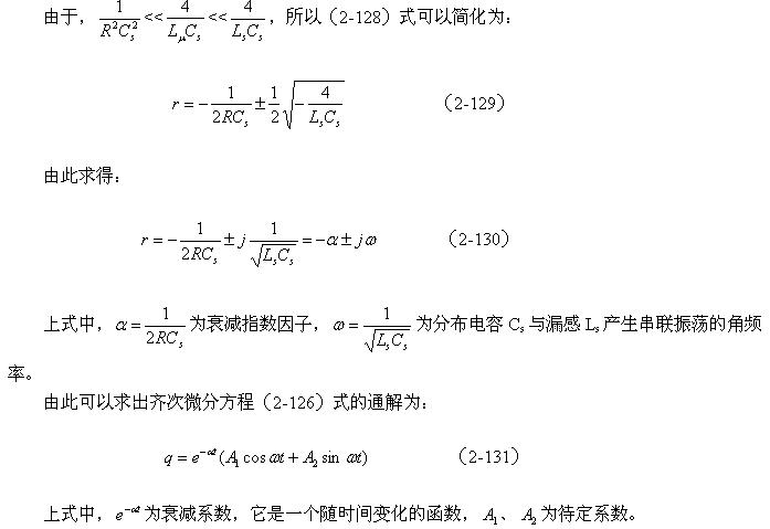 (2-122)式中,Cs為變壓器的總分布電容,Cs1為變壓器初級線圈的分布電容;C1為次級線圈電路中總電容C2(包括分布電容與電路中的電容)等效到初級線圈電路中的電容;n = N2/N1為變壓比。