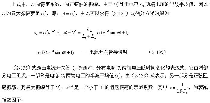 直到t2時刻,流過Ls的電流等于0,電容器Cs充電結束,同時Cs兩端的電壓也達到最大值;然后電容按正弦曲線開始放電,流過Ls的電流開始反向,到t3時刻,Cs兩端的電壓又與輸入電壓U相等,電容停止放電,但流過Ls的電流不能為0,Ls將又產生反電動勢給電容Cs進行反向充電,所以Cs兩端的電壓低于輸入電壓U。