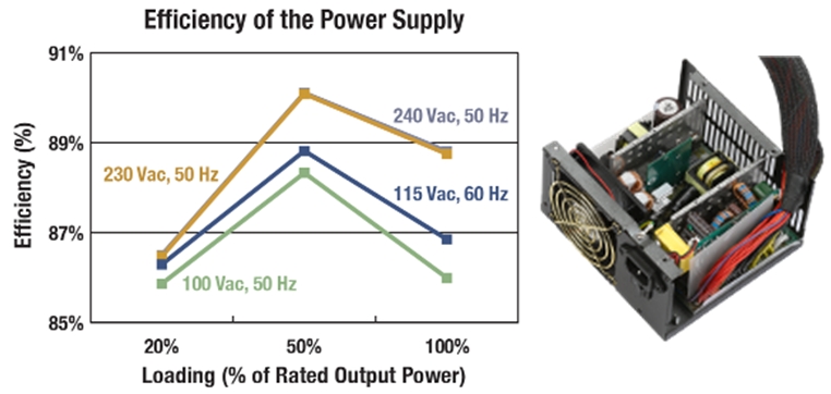 以多路輸出臺式機(jī)ATX電源為例,80 PLUS銀級規(guī)范、計(jì)算產(chǎn)業(yè)氣候拯救行動(CSCI)銀級規(guī)范自2009年7月開始生效,要求多路輸出臺式機(jī)ATX電源在額定輸出功率的20%、50%和100%等條件下能效分別達(dá)到85%、88%及85%。后續(xù)的80 PLUS金級和CSCI金級規(guī)范將于2010年7月開始生效,進(jìn)一步將能效要求提高到87%、90%和87%。