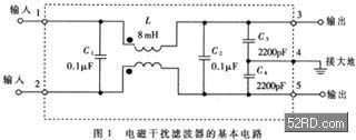 電磁干擾濾波器的基本電路如圖1所示。