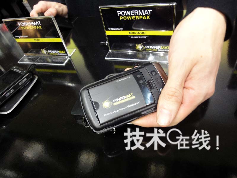 此次備受關(guān)注的是在電池組中內(nèi)置受電線圈等的“Powermat Powerpak”。售價(jià)39.9美元,將于2010年6月上市,此次公開(kāi)了為15款手機(jī)配備相應(yīng)的Powermat Powerpak進(jìn)行充電的現(xiàn)場(chǎng)演示。將取代通常采用的電池組使用。該公司原產(chǎn)品需要在設(shè)備上覆蓋內(nèi)置受電線圈等的“Jacket”,取代電池用后蓋。