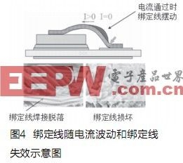 通常,逆變器設(shè)計(jì)主要考慮IGBTTjmax(最高結(jié)溫)的限制,但在混合動(dòng)力車應(yīng)用中,逆變器較少處于恒定工況,加速、巡航、減速都會(huì)帶來電流、電壓的改變,由此帶來的ΔTj(結(jié)溫快速變化)將會(huì)更大程度影響IGBT的壽命,IGBT導(dǎo)通電流波動(dòng)時(shí),綁定線也會(huì)隨之?dāng)[動(dòng),對(duì)綁定線和IGBT芯片連接可靠性有較大的影響,反復(fù)的擺動(dòng)可能導(dǎo)致綁定線壽命的耗盡(EOL,EndofLife),例如綁定線和IGBT芯片焊接脫落、綁定線斷裂等,直接導(dǎo)致IGBT的損壞。