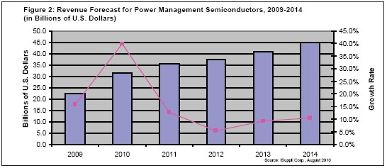 由于在商業與工業領域的增長勢頭喜人,電源管理半導體2010年將取得驕人增長,隨后幾年將望尖莫及。