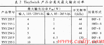 (1)TinySwitch有DIP-8、SMD-8兩種封裝形式、6種型號。產品分類見表2。