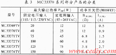 MC33370系列包括MC33369~MC33374五種規格、17種型號。以TO-220五腳直彎式封裝為例,其產品分類見表3。