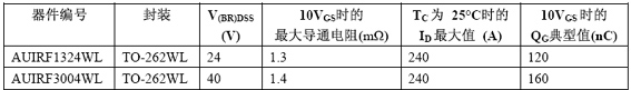 IR亞太區銷售副總裁潘大偉表示:“新型WideLead TO-262封裝的設計靈感來自于DirectFET封裝超低芯片自由阻抗的出色性能,以及傳統TO-262封裝的各種局限性。IR新型WideLead封裝中的MOSFET新系列在傳輸高電流的同時,大大降低了引線中的傳導損耗和自身熱量,從而為汽車應用提供了一個堅固可靠的解決方案。”