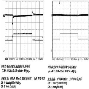 從動態(tài)響應(yīng)的圖形對比中可以看到,無論是輸出過沖,還是恢復(fù)時間,MAX5051模塊都具有明顯的優(yōu)勢。
