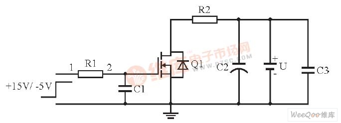 二極管D1導通時, 若Uge為所加的反向電壓值(可記為-Ug2, 正向電壓記為+Ug1), 集電極電流iC=0, Uce=U2。開通后, U1向Cgc、Cge充電, 此時Uge可寫成: