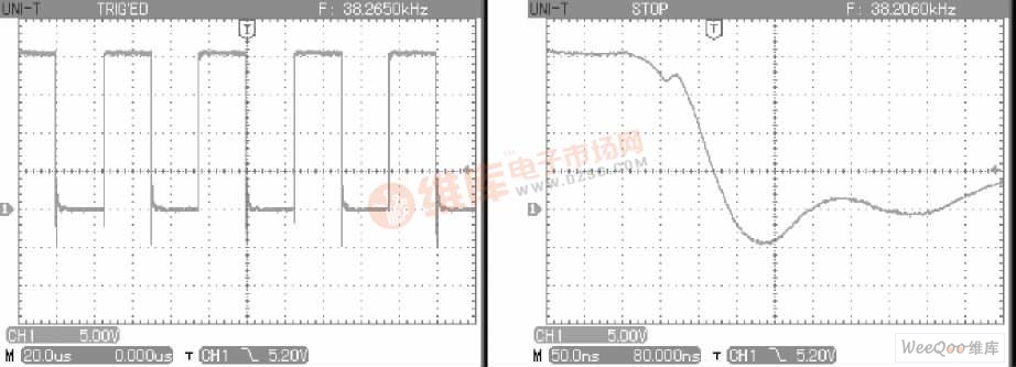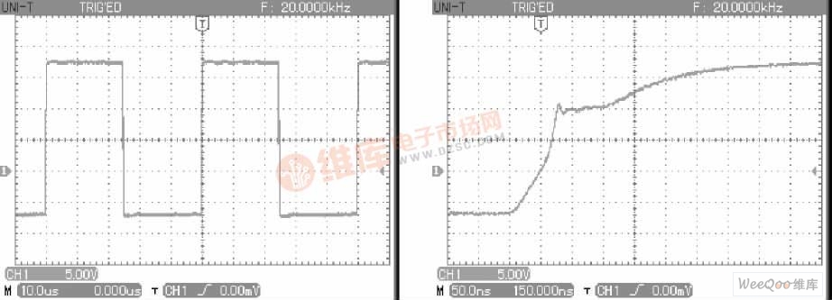 在輸入端增大串聯電阻R1的阻值, 會使輸入驅動波形的上升沿與下降沿(GE端電壓) 的銳度減緩, 其影響是使IGBT的開通與關斷的時間延長, 同時輸出端(CE) 的上升沿與下降沿的銳度也同樣減緩, 并可減小輸出端CE兩端電壓的尖峰, 另外, 帶給電源的高頻諧波的峰值也在減小。但是, 這樣會使IGBT的開關損耗增大。