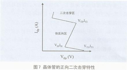 圖7是晶體管的正向擊穿特性,圖7中的VT·是器件的損傷點,其定義有以下三種設(shè)定: