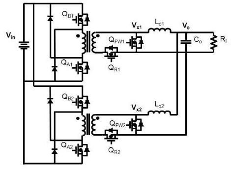 圖1:雙相交錯(cuò)式雙開關(guān)正向轉(zhuǎn)換器