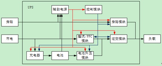 對(duì)于負(fù)載端來(lái)說(shuō),能夠直接相連的只有旁路模塊與逆變模塊,而這兩個(gè)模塊是并聯(lián)的;