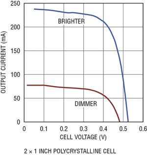 相比之下,靠室內照明光工作的設備可用能量要少得多。常見的室內照明光的強度約為充足太陽光的0.25%(室內照明光強度與太陽光強度的巨大差別難以察覺,因為人眼能適應很寬的光照強度范圍)。室內應用可用的光照量低得多,因此呈現了一些設計上的挑戰。即使面積為4平方英寸的大型高效率晶體電池,在典型辦公室照明條件下,也僅能產生860μW功率。