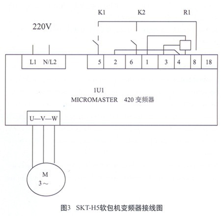 快事達粘膠實業有限公司購進的德國Profil-Clip GmbH公司生產的SKT-H5全自動軟包裝分裝機所采用的變頻器為西門子公司的420變頻器,接線圖如圖3所示,在2009年6月的雷雨天下顯示"F002”故障,表示是過電壓引起,期間共燒毀了三臺變頻器,究其原因,是由于電源系統未有采用防雷技術所致。后采用了圖1所示的電源防浪涌系統后,再沒有發生同類故障現象。
