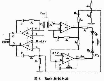Buck控制采用了最大占空比為100%的UC3842芯片,不對稱橋控制采用了最大占空比為50%的UC3844芯片。同時兩級電路都采用電壓型的控制。不對稱橋采用的是前饋控制,當輸入的電壓有波動時,占空比能夠相應(yīng)調(diào)整,以保證前級的輸出基本不變,如圖5所示。