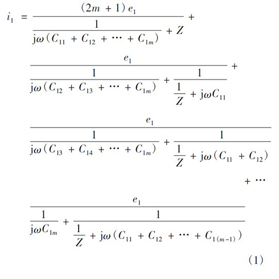以圖3 所示的變壓器為例,最上層一次繞組與二次繞組間的寄生電容最大,是產生共模傳導EMI 的主要原因,故以下主要分析這兩層間分布電容對共模傳導EMI 的影響,忽略變壓器其他繞組對共模傳導EMI 的影響。