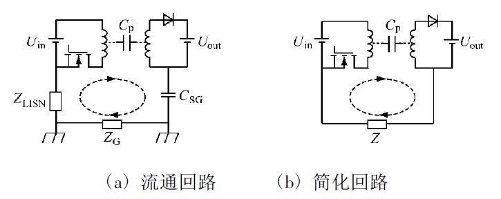 圖4 變壓器中共模傳導EMI 的流通回路