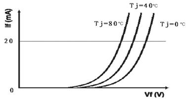LED的伏安特性和其它二極管一樣具有負溫度系數的特點,即在結溫升高時I/V曲線出現左移現象,如下圖所示。