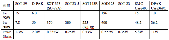 由表中可見,On-semi公司的NSI50350ADT4G所采用的D-PAK具有最小的熱阻,其耗散功率高達11W。不過如果整個系統設計于這樣高的耗散功率也說明其效率不高,是需要避免的。