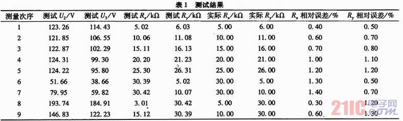 由1~5組可知,當(dāng)絕緣電阻大時(shí),測(cè)試相對(duì)誤差略有增大,這是因?yàn)椴蓸覣/D的輸入阻抗較小,因此當(dāng)測(cè)試電阻較大時(shí)造成誤差相對(duì)大些。另外,當(dāng)負(fù)母線的絕緣電阻<30 kΩ、負(fù)母線絕緣電阻正常時(shí),前者的測(cè)量效果差些。因?yàn)榇藭r(shí)實(shí)際測(cè)得的電壓U2和U3都較小,A/D采樣的相對(duì)誤差大一些,所以電阻的誤差也大一些。不過(guò)遠(yuǎn)好于平衡橋法無(wú)法發(fā)現(xiàn)兩點(diǎn)接地的情況,可以正卻發(fā)現(xiàn)接地。絕緣檢測(cè)的環(huán)境下,只要絕緣電阻>20 kΩ即認(rèn)為絕緣良好,因此對(duì)于絕緣檢測(cè)的應(yīng)用環(huán)境,本系統(tǒng)能夠比較精確的測(cè)試各路的絕緣電阻,完全滿足應(yīng)用環(huán)境的需要。