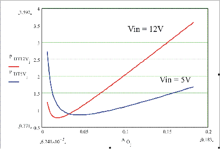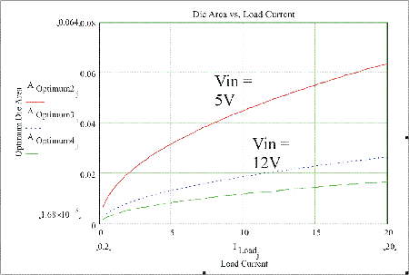 如圖5所示,功耗是裸片面積的函數,周圍是針對輸入電壓為5到12V的頂部MOSFET的最合適值。這清楚地表面,損耗高度依賴于裸片面積以及如果裸片面積增加或減少時這些損耗所增加或減小的劇烈程度。