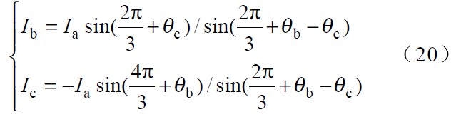 ①各相電流幅值的分配比例只與輸入相電壓的偏移角度有關(guān),與各相輸入電壓的幅值大小無關(guān)。并且在一定范圍內(nèi),偏移角度越大,該相的電流幅值分配比例就越大。
