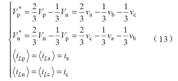 根據(jù)式 (3 ),以區(qū)間I 為例,可以通過控制開關(guān) Tp 、Tn 使電感電流iLb iLc 對(duì)應(yīng) V *p和 V *n相應(yīng)的變化來實(shí)現(xiàn)。由于在I 區(qū)間內(nèi)有: