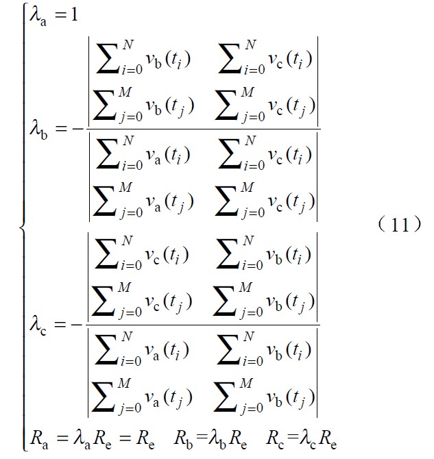 式 (11 )為相電壓不對(duì)稱系數(shù)的計(jì)算公式,其中λa ,λb 和λc 為相電壓不對(duì)稱系數(shù),Re 為標(biāo)準(zhǔn)等效電阻。可見,當(dāng)電網(wǎng)電壓不對(duì)稱時(shí),為使各相電流仍能正確跟蹤對(duì)應(yīng)相電壓,各相等效電阻值是不同的。特殊地,如果三相電壓對(duì)稱,λa=λb=λc =1 ,則Ra=Rb=Rc=Re.