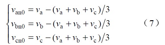 即 van0, vbn0 和vcn0 分別為各相電壓不含零序電壓的部分。由式(6) 和式(7 )可知,各相電流仍能保持低電流畸變。但若(va+vb+vc)/3≠0, 輸入電流和輸入電壓會(huì)存在一個(gè)相位差,從而導(dǎo)致系統(tǒng)不能實(shí)現(xiàn)單位功率因數(shù)。為使系統(tǒng)仍能實(shí)現(xiàn)單位功率因數(shù)的目標(biāo),必須改進(jìn)系統(tǒng)的控制策略。
