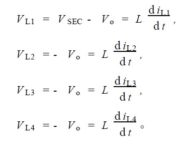 通過以上分析可以看出, 倍流整流結構的二次側2 個濾波電感電流在濾波電容上相互疊加, 從而使得輸出電流紋波變得相當小。