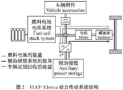 燃料電池汽車的運行并不是一個穩態情況,頻繁的啟動、加速和爬坡使得汽車動態工況非常復雜。燃料電池系統的動態響應比較慢,在啟動、急加速或爬陡坡時燃料電池的輸出特性無法滿足車輛的行駛要求。在實際燃料電池汽車上,常常需要使用燃料電池混合電動汽車設計方法,即引入輔助能源裝置(蓄電池、超級電容器或蓄電池十超級電容器)通過電力電子裝置與燃料電池并網,用來提供峰值功率以補充車輛在加速或爬坡時燃料電池輸出功率能力的不足。另一方面,在汽車怠速、低速或減速等工況下,燃料電池的功率大于驅動功率時,存儲富余的能量,或在回饋制動時,吸收存儲制動能量,從而提高整個動力系統的能量效率。