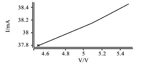 設(shè)置Rset為500Ω、Vcc為3V,令5V電源電壓產(chǎn)生±10%的波動,此時恒流輸出情況如圖5.驅(qū)動電流由37.8mA變化到38.5mA,波動百分比為1. 85%。