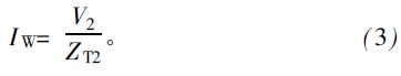 這里V2為VNA端口2接收電壓,ZT2為由是制造商給出的接收探針阻抗,將式(2)和式(3)代入式(1),可求出供電電源的阻抗為:
